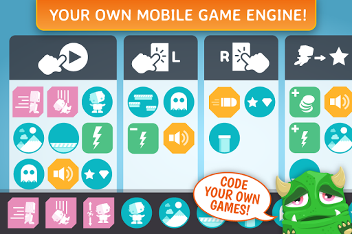In Coda Game you can be the boss of your own awesome games. Drag and drop the visual coding blocks to create games such as Air Hockey, Endless Flyer and Platform games and share them with the world! Your imagination is the only limit!