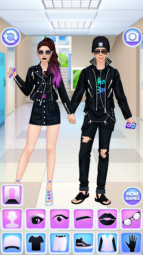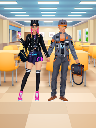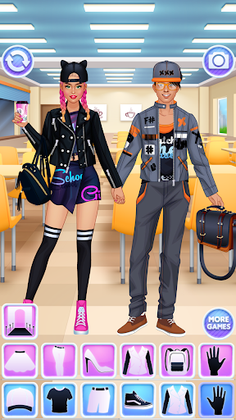 Take screenshots and share cool high school outfits that you created in our fashion games for teenagers offline to show off your fashionista talents. Experiment and find the best look ever for a student girl and her crush. Discover if your college couple is the most fashionable in these free dress up games for girls & feel a real stylist.