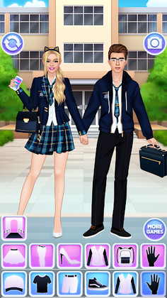 Our high school girl & boy really like dressing up and having fun. Are these teenagers boyfriend and girlfriend with their own fashion makeover love story or bff? You're the one who decides it while dressing people in this girl dress up games👗👙👘👖👕👟👞👠🎒👜👛💄🎎 offline.