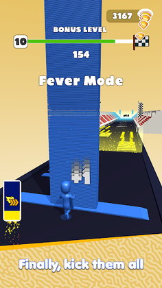 At the end of the level, you have to tap as fast as you can to boost your speed and kick the stack to get BOUNES.
