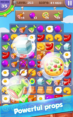 Indulge in your passion for food and cooking with this amazing 3-match puzzle game.