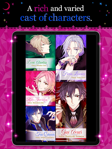 Enter a forbidden romance with five beautiful princes in a dark fantasy world. Features gorgeous art, interactive gameplay, and voice talents of popular seiyuu.