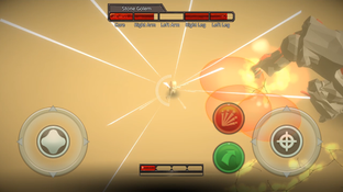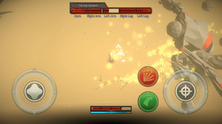 To operate your character, make use of the virtual stick located on the left of the screen. The stick determines the movement direction. The one on the right, on the other hand, controls the aiming direction. Fatal attacks are accomplished when the aiming gauge reaches the red mark. Dodge enemy attacks by tapping the green button, a short burst of which can nullify the effects of the enemy's move. Finally, you can build gauges beneath the health bar when using evasion, performing lethal attacks, or dodging enemy attacks.