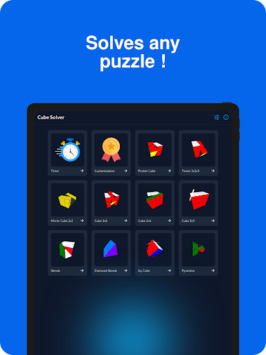 - Pocket Cube, Mirror Cube 2x2 and Tower Cube : this app can solve the cube in 14 moves or less !