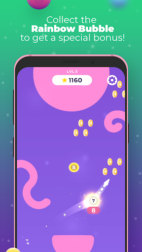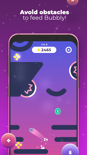 Touch the Bubble and pull back to jump. You have limited jumps, which can be reloaded during the game when collecting new charges. There are stars that increase your score during your way up in each level - be sure to catch them!