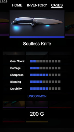 Unbox and collect the unique weapons and knives with different power and gear score.
