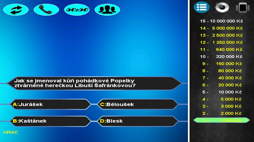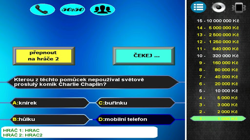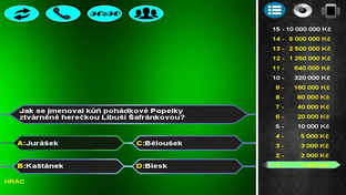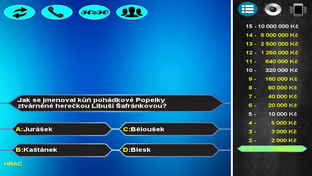 Otestujte své vědomosti v českém kvízu kde na Vás čeká přes 2500 otázek ve třech úrovních obtížnosti, a další otázky budou připraveny v pravidelných aktualizacích. Využijte tři žolíky jako nápovědu, popřípadě získejte čtvrtého při úspěšném absolvování rozstřelu. Hru můžete hrát i jako multiplayer pro dva hráče a zjistit tak jestli jste chytřejší než váš přítel.