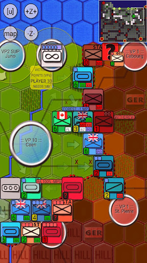 A wide variety of units under your command: Sherman M4 tanks, American, British, and Canadian infantry divisions, paratroopers, special units like the US Army Rangers and Royal Marines Commando Brigade, special crab mine cleaner tanks, and air force units. Meanwhile, the German Wehrmacht starts with coastal fortifications and very weak Ost battalions and static infantry units, but as the days pass, it is reinforced with regular infantry, Waffen SS, and Panzer divisions.