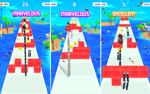💃 Rhythm-Based Fun: If you enjoy music games, you’ll love moving to the rhythm in this dazzling experience. Each beat of the music inspires your steps, making every level a joy to play.