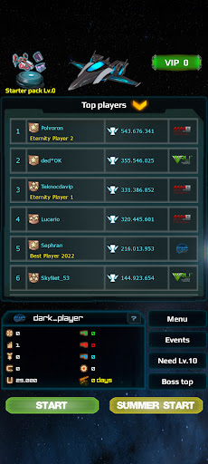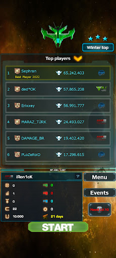 Thousands of different upgrades for ships, guns, shields, engines and rocket stations. Compete with players for a leadership position, get the best rank in space and defeat the strongest space aliens ever!