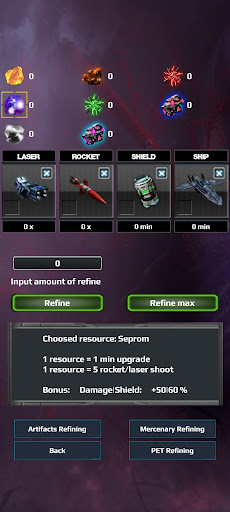 Collect various drafts, resources and create powerful lasers, ships and shields.