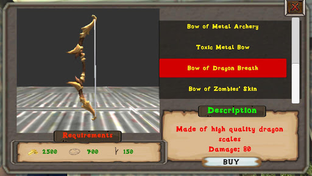 - 9 available weapons. They are made up of different bows. To buy each of them, you need enough resources. Get all of them to strike out all zombies!