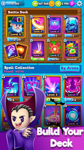 The game has a huge collection of collectible cards related to heroes and spells. Each card provides a different ability. Use them strategically. Experience the magic, adventure, and chaos.