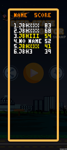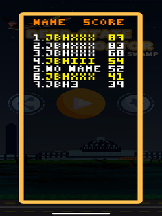 Lastly, this game also contains a leader board for the top 250 scores. Anyone who gets a high-score in Space Mode (piloting the Trump-Space-Force-One Anti-Gravity Craft), will have their name & score in bright yellow font on the leader board. Every other high score is shown in white font. To see the leader board, click the star button on the home screen, and to exit the leaderboard, just click anywhere outside of the orange border. Also, while you are still able to play the game offline, you must be connected to access and submit to the leader board.