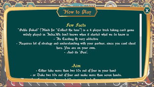 It has excitement of bidding & negative scoring for unachieved target similar to western game like Spades. What makes it different is that only bidder's team can earn or loose points. You need to win the bid similar to Indian game of 28/29. One has to play it to know all the excitement it is about.