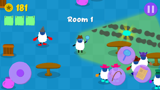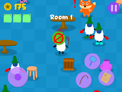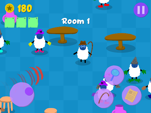 Find the wolf in disguise in Detective Sheep by collecting clues.