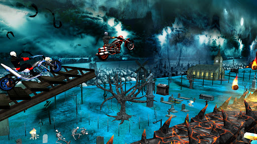 In Devil's Ride Bike Stunt Game, explore the dark underworld of the Ghost Rider as a fearless 3D skeleton biker.