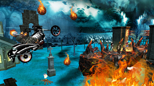 With adrenaline-fueled scary levels, this bike stunt simulator gives you a full 3D motorcycle riding experience. Featuring dynamic obstacle, this ghostly racing game will keep you hooked for hours. Show off your extreme bike stunt skills as you navigate terrifying tracks. Use the responsive controls to accelerate, smash, steer, and survive through death-defying stunts.