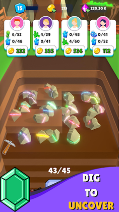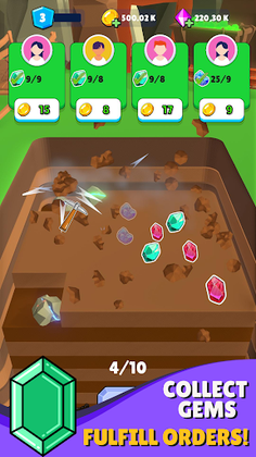 Uncover valuable gems, fulfill orders, and level up in this engaging idle clicker game.