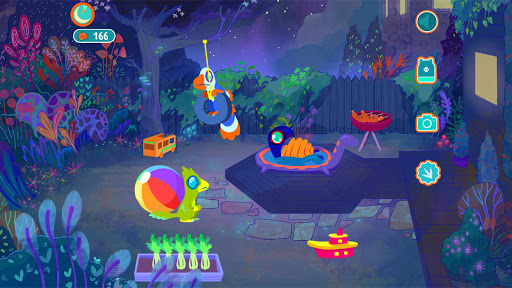 Dino Daycare gives you your very own backyard dino fest! As day turns to night and back again, cute baby dinosaurs show up in the backyard in search of food and fun toys. It's up to you to keep them happy and healthy, putting out food they like, and toys for them to play with. Your goal is to see as many baby dinos as you can and take pictures of them for your album. You do this by putting out different types of food and toys to attract different dinos. You also control time; you can make it switch from day to night and back again to see what new dinos appear with the rising and setting of the sun. Whatever you do, have fun!