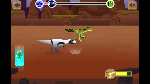In each round, your dino races one-by-one against three other dinos. When you're faster than your opponents you unlock new racing dinos. After an easy start, you'll soon find yourself up against bigger, faster, stronger dinosaurs that are more challenging to beat. You can race: Tyrannosaurus rex, Troodon, Spinosaurus, Incisivosaurus,