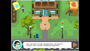 Perform fun dino experiments with Dana herself! Explore Dana's neighborhood and the world around it. Along the way collect fossils and gather bait to attract dinos. You can visit the museum, the grocery store, and even Dana's house! Hop across streams, tramp through snow, and play in the park as you help Dana do 10 Experiments just like in the TV show! And of course, you'll meet lots of cool dinosaurs!