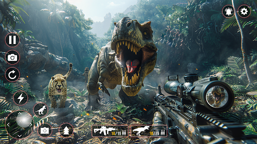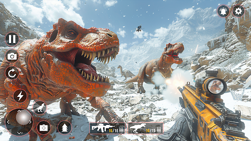 Get ready for an exciting Dino hunting games journey through ancient Dinosaur games in landscapes, armed with powerful weapons of carnivores dinosaur hunter to face the challenge of hunting games lifelike dinosaurs as a dino hunter.