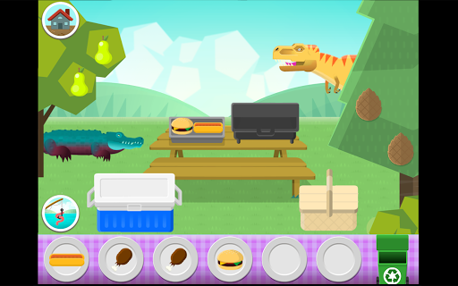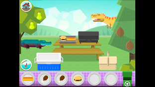 Great dino faces and reactions keep feeding time fresh! Dino Picnic is an endless, open-ended activity that softly emphasizes the idea that different animals eat different kinds of food. Your hungry dino friends are: Brachiosaurus, Megalodon, Spinosaurus, Diabloceratops, Deinosuchus, and Tyrannosaurus rex.