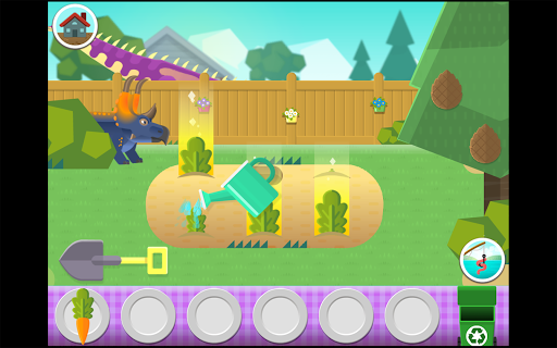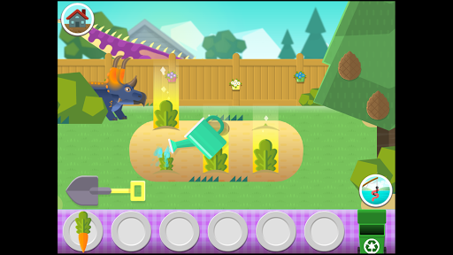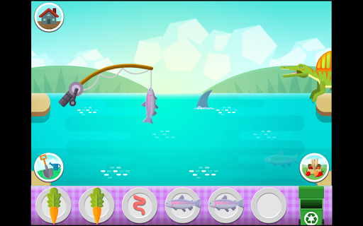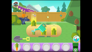 Six of Dana's biggest and friendliest dino buddies are hungry! Across three fun environments you can grow food, pick food, and catch fish to feed your dino friends. Then it's face time with your dinosaur to feed it a tasty meal. The dinos will eat whatever you put in front of them, but they're happy and funny when they eat their favourite foods.