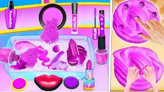 Learn how to make it first, then enjoy adding tons of ingredients to slime, including mixing eyeshadow into clear slime, scraping it with a sharp needle-like object that will relax and melt your brain. For more fun, you can also make lipstick by mixing lipstick with slime. Why don't I enjoy mixing all my makeup without damaging my real makeup with this super makeup slime simulator experience.