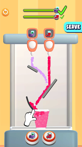 Draw on the screen to direct the soda into the cup, mix the right amount and serve your customers. If they like it they will reward you! If you can't mix the right amounts... Well, its fair to say that they won't be pleased. Puzzles seem easy at first but you need to think carefully to figure out each one. Can you solve them all?