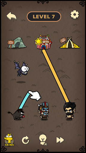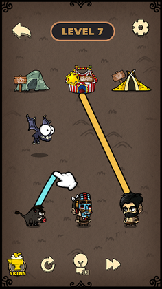 You need to help humans find their way home, draw a line between humans and corresponding houses, and prevent humans and beasts from colliding with each other. If they collide, they will get dizzy and the game will fail. In order to avoid various obstacles, let all humans and beasts go home safely to win the game.