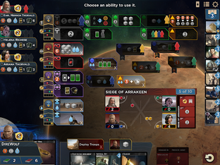 Prepare to dive into the world of Dune and witness the ultimate combination of strategy and intrigue. Travel through the dangerous landscapes of Arrakis with the award-winning board game Dune: Imperium. You can compete online, locally with AI, or face off against the formidable House Hagal. Earn Achievements to show off your leadership skills and embark on more than a dozen Challenges to test your wit and cunning. Compete for badges in the rotating Skirmish Mode where every game is different! Rule over the Spice, rule over the Universe. It's time to take control of your destiny on the desert planet - Arrakis. With the Great Houses of the Landsraad forging alliances and espionage, whom will you influence, and whom will you betray? The choices that you make will determine whether you emerge victorious or succumb to the power of the Empire.