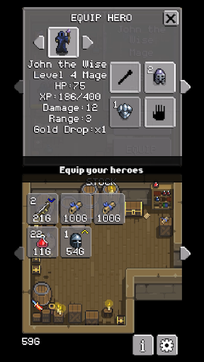 Hire adventurers and equip them with items before sending them into the dungeon to collect gold and loot for you. You've got a debt to pay to the king and in order to pay it, you're going to have to buy low, sell high and hope your hired heroes make it out alive.
