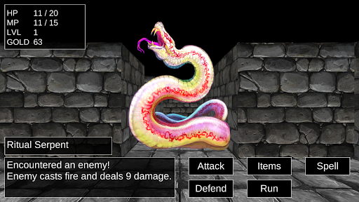 Dungeoneer’s gameplay primarily consists of exploring the maze like dungeon, defeating enemies in turn based combat, and improving your character so that you can overcome greater challenges and reach the end of the dungeon. Explore 10 floors of mazes as you fight off a variety of enemies. Upgrade your equipment, gain new spells, and level up your character to confront new challenges on each floor.