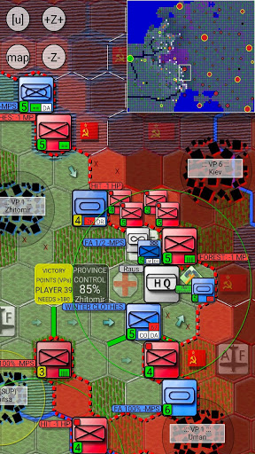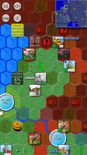 + Tactical Areas and MPs: Some hexagons are connected together, forming slowly evolving tactical areas, and you can move between such hexagons using tactical MPs instead of regular MPs. This opens up a completely new tactical dimension.