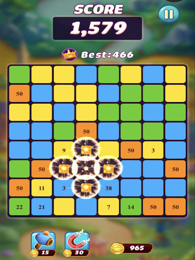 Tap on a grid cell to gather blocks of the same color. At least three same colored blocks are needed to do this.