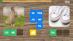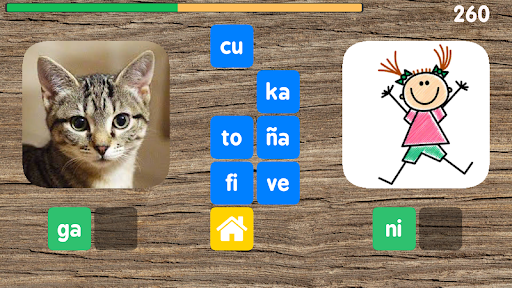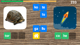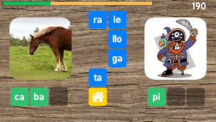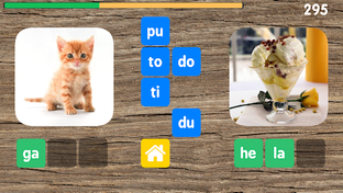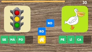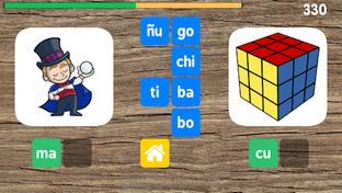 Cuando todas las sílabas correctas han sido seleccionadas, el juego continúa con dos palabras nuevas.