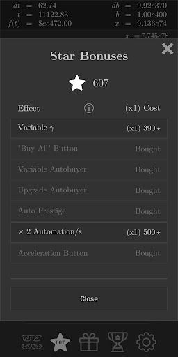 Exponential Idle: a math-inspired incremental game about stacking money using exponential growth, with upgrades and rewards. Step through time and unlock achievements!