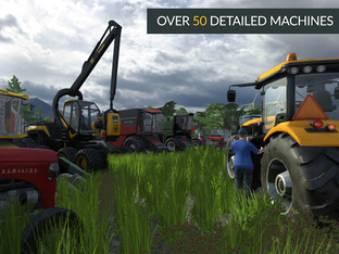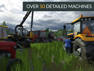 • drive 60 different cultivating machines including tractors, harvesters and woodcutters which you can customize with your own skins,