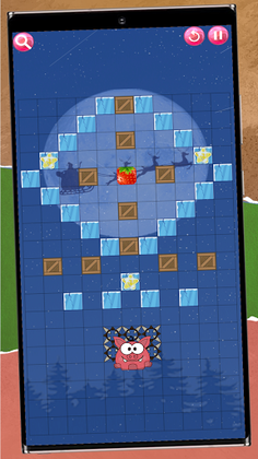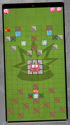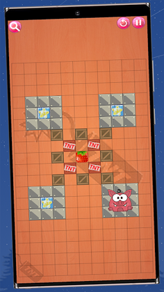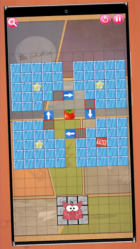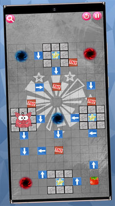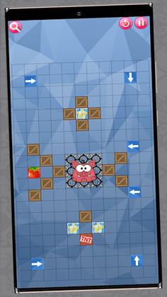 The candy is placed in a maze. Swipe 4 directions to bring the candy to the mouth of the pigs.