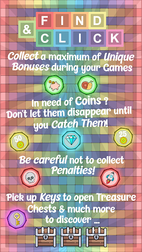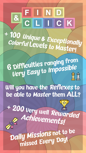 Find & Click is intended for all types of players thanks to its various levels ranging from very easy to impossible (reserved for the more daring players!).