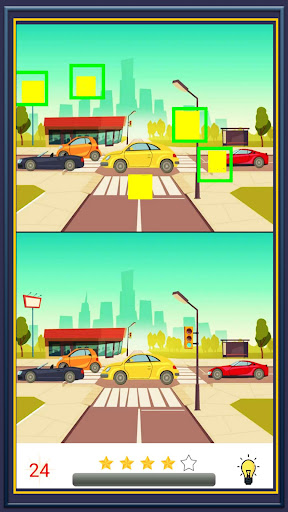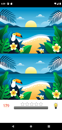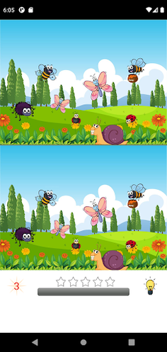 Find 5 differences between two similar pictures and tap on the spots to mark them. You can use a hint to see where there is a difference in the pictures.