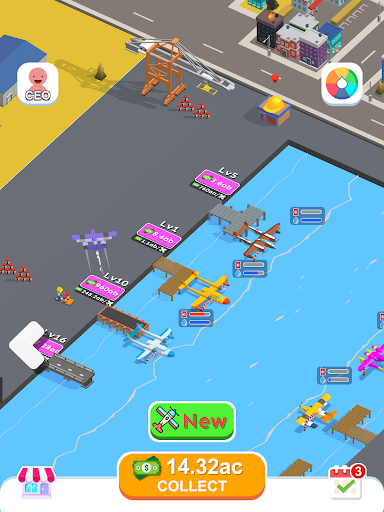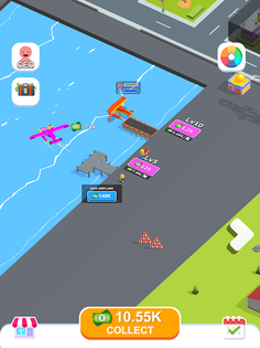 Take to the skies in your firefighting aircraft, soaring over the blazing buildings, and unleash torrents of water to extinguish the raging fires. After dousing the flames, fly back to the serene lake, near the bustling dock. But remember, your aircraft needs refueling and water replenishment. Spend your hard-earned coins to unlock new dock locations, acquiring additional aircraft for your fleet. The dock is divided into two columns, each equipped with an oil drum stack and a diligent worker. Invest your funds to upgrade the worker's speed and carrying capacity. Can you become the ultimate hero and build the most efficient firefighting operation?