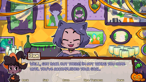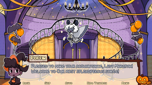 FIRST KISS AT A SPOOKY SOIREE, a visual novel first created for Yuri Jam 2016, is now available in mobile version. In this game, you take on the role of Marzipan, a luminescent witch who has never experienced a kiss. Until now! The question is, who will she kiss? Will it be her best friend, a demon, or perhaps a charming dog girl? The decision is entirely up to you!