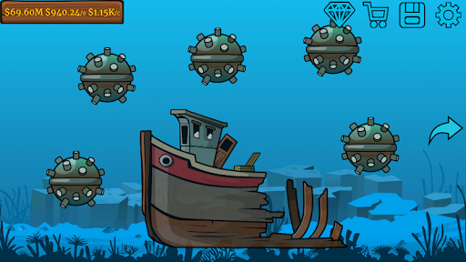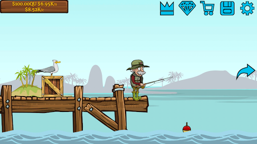 Addicting Idle Incremental Tycoon Clicker, grow own company, which will generate cash from fishing and catching fishes, travel to new sea, unlock rare items, hire new workers, upgrade them.