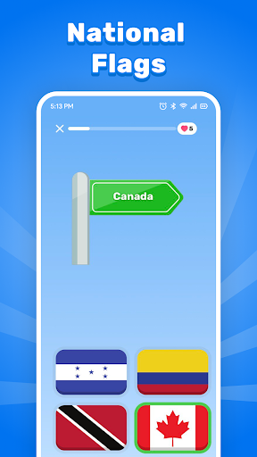 Guess the flag of the country from the four offered or choose the country whose flag is shown on the card.