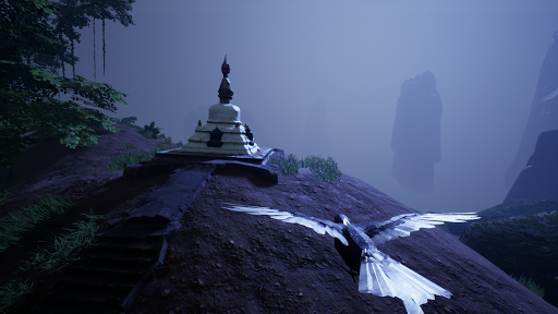 Become a monk that turns into a raven to venture the scenic ambiance.