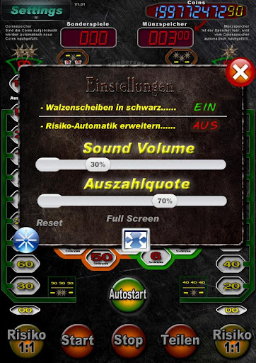 In den Einstellungen können die Walzenscheiben auf schwarz umgestellt, sowie auch die Risikoautomatik erweitert werden.
