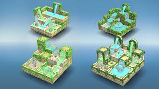 Train your mind, solve the different puzzles by making the water flow from its origin to the color fountains forming different waterfalls. Create water jets, water cascades, move the different blocks and stones, channels and pipes through the 3D board and get the water of each color to flow and find the way to your destination fountain.